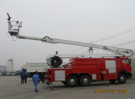罐體容積:8000L,消防炮可電控旋轉,射程≥55M,額定作業高度24米,最大作業幅度15米。 |