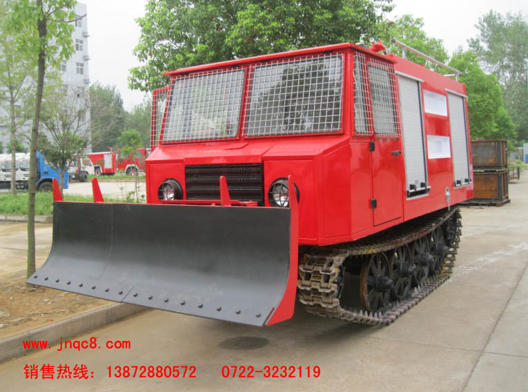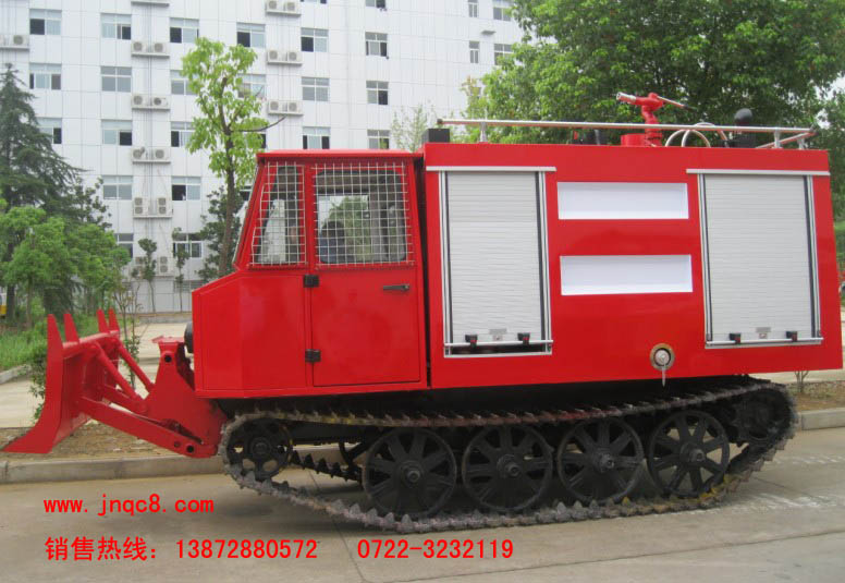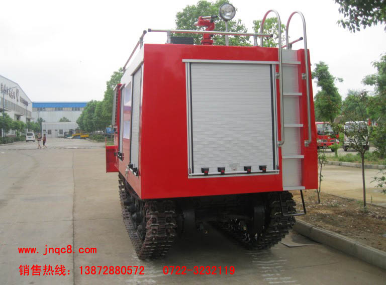 履帶式消防車安裝了消防泵和消防炮,射程達45米以上,該消防車裝備齊全,水帶、快速接頭、消防腰斧等裝備一應具全,方便好用,是山區消防的首先。