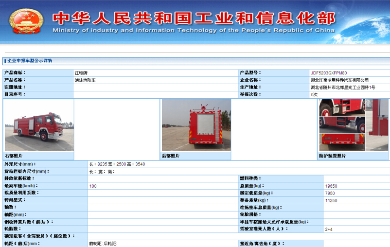 昨日,湖北江南專(zhuān)用特種汽車(chē)有限公司國(guó)四消防車(chē)公告已經(jīng)下批一部分,此次下批的車(chē)型有3噸系列的消防車(chē)即東風(fēng)銳鈴水罐消防車(chē)、江鈴水罐消防車(chē)和慶鈴水罐消防車(chē)。另263批公告公示中的車(chē)型有6噸東風(fēng)天錦消防車(chē)和8噸豪沃消防車(chē)。