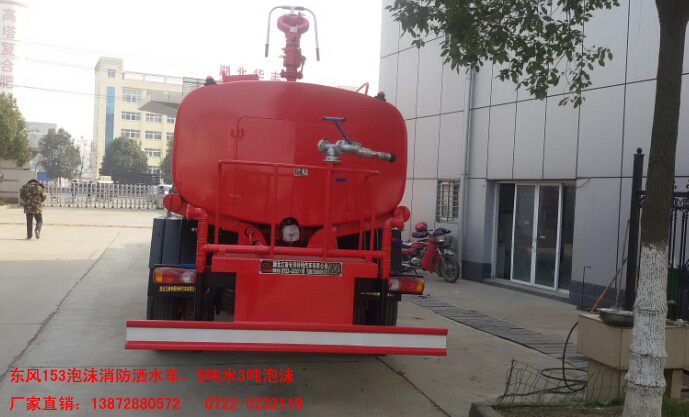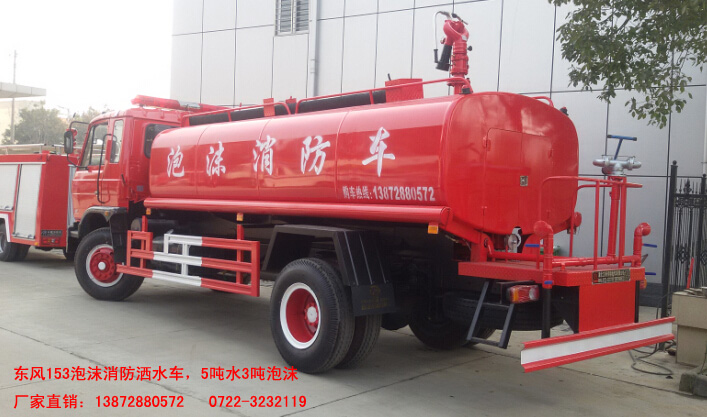 湖北江南專用特種汽車有限公司生產(chǎn)的東風(fēng)153泡沫消防灑水車是由東風(fēng)153底盤制造而成,采用康明斯190馬力發(fā)動(dòng)機(jī),水罐容積5立方,泡沫容積3立方,采用CB10/30型消防泵,PL32兩用消防炮,水射程達(dá)50米以上,泡沫射程35米以上,該車安裝了灑水裝置,可用于打水滅火,同時(shí)可用泡沫滅火,滅B類火災(zāi),也可以用于園林綠化灑水,一車三多,經(jīng)濟(jì)實(shí)惠。湖北江南消防車:13872880572  0722-3232119