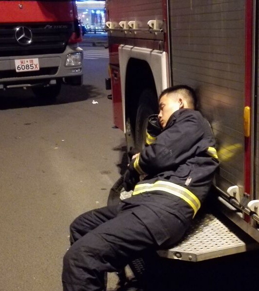 奮力滅火十小時 消防車當“床”