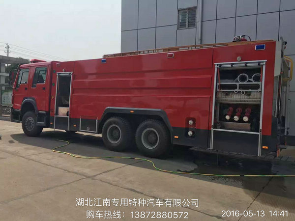 由本公司湖北江南專用特種汽車有限公司生產的豪沃16噸消防車已經下線,各方面的性能已檢測完畢,擇日發往上海檢測中心檢測,檢測合格后申報國家發改委汽車公告。湖北江南消防車廠:13872880572