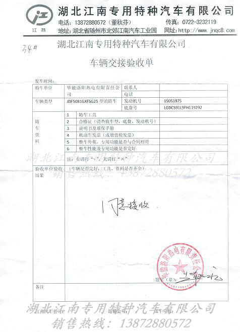 華能電廠在湖北江南專用特種汽車有限公司銷售經理董秋芬購置2輛東風多利卡消防車已經于端午前順利收車。此次購置的2輛消防車分別為4噸水罐消防車4噸泡沫消防車。以下是發車時所拍照片:
