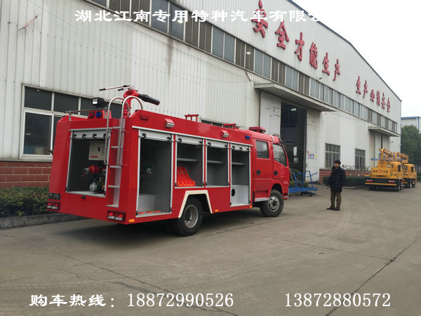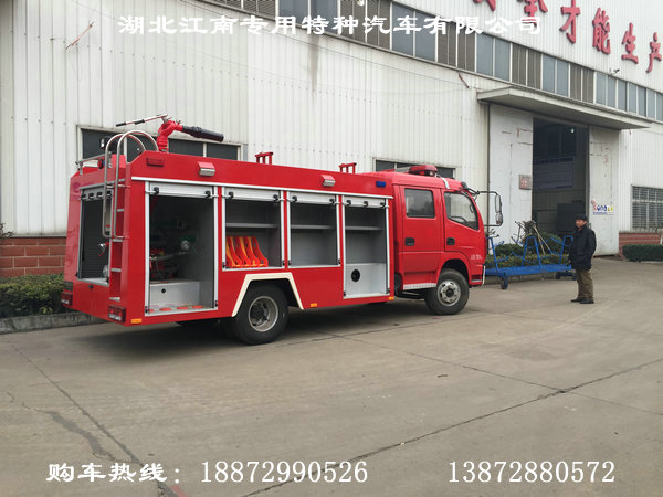 昨日,滁州市防水科技有限公司王部長來我廠湖北江南專用特種汽車有限公司驗收上個月定購的東風4噸泡沫消防車,該車由東風多利卡底盤制造而成,水罐容積3立方,泡沫罐容積1立方,采用CB10/30型消防泵,PL24型水泡沫兩用消防炮,射程達550米以上。 消防車廠家:13872880572