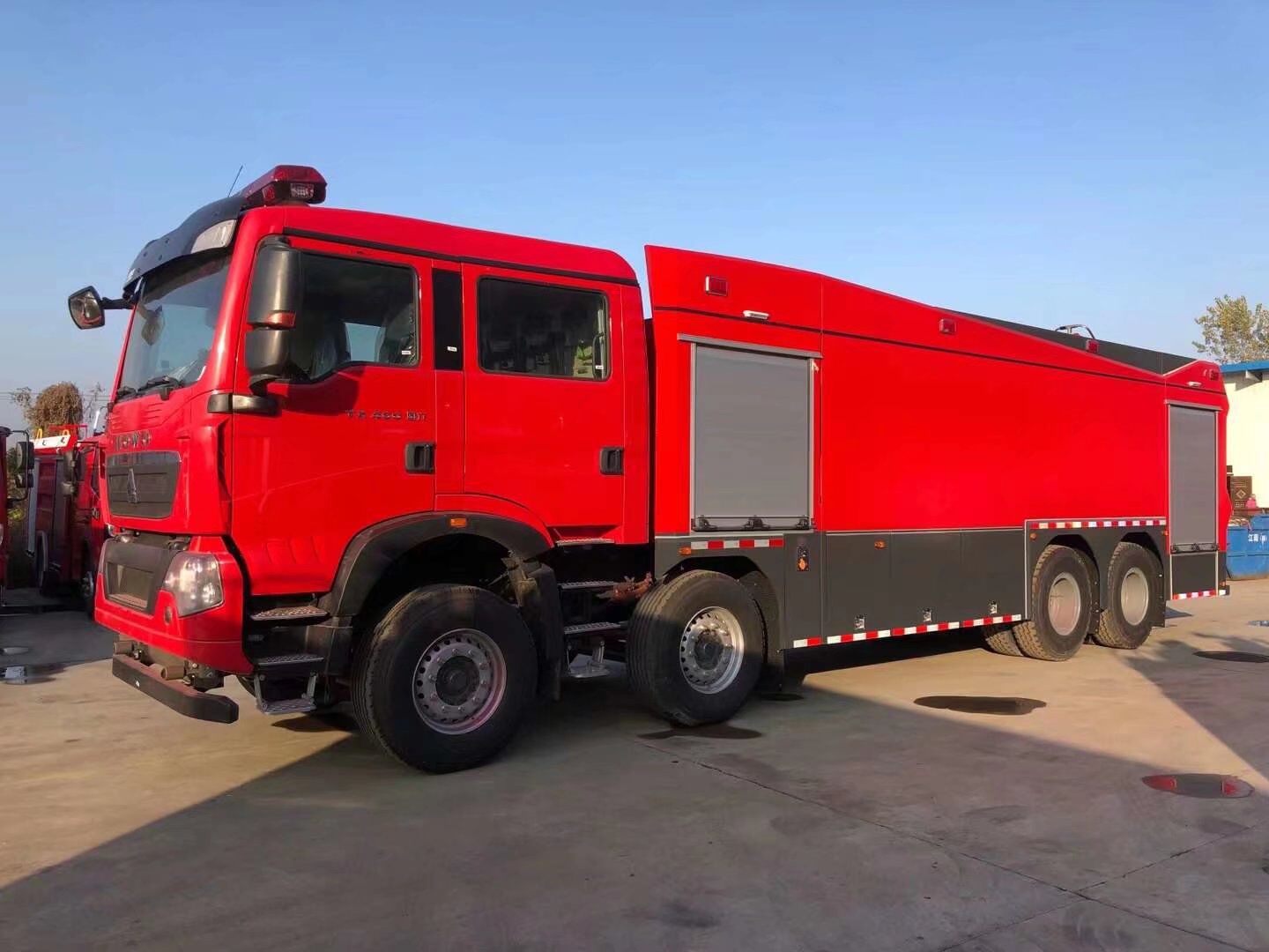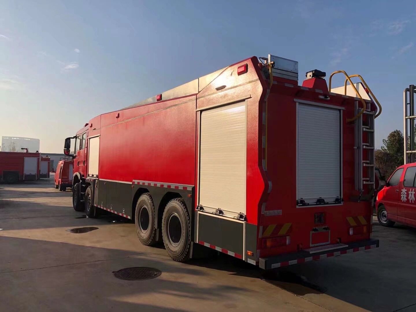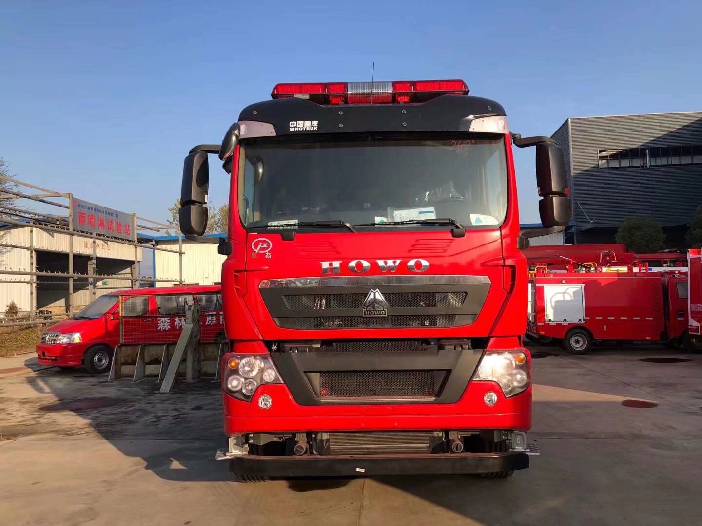 豪沃前四后八雙排駕駛室消防車,460馬力發動機,原廠雙排駕駛室,原廠夾心取力器,罐體容積20立方,上海蓉申80泵,威斯特80消防炮,射程90米。
