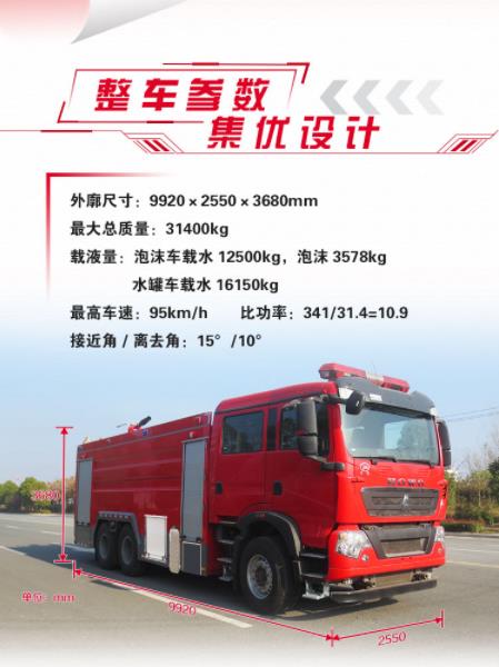 泡沫車:水12500kg,泡沫3578kg