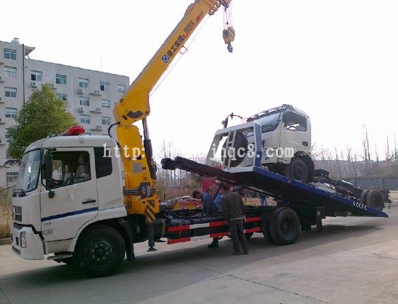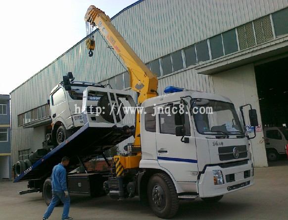 湖北江南專用特種汽車有限公司-江南清障車廠家,東風天錦平板帶吊型清障車今日成功下線,此車功能齊全,使用方便,一車多用。