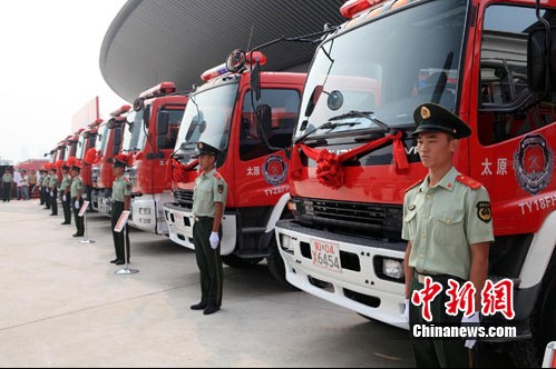 來自中新網(wǎng)消息:2011年7月20日上午,太原市為“迎中博”消防隊專門配發(fā)特種消防車,此交車儀式在煤炭交易中心舉行,消防大隊幾百名消防官兵參加了配發(fā)儀式。