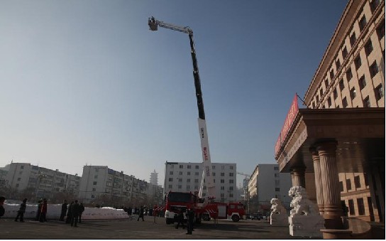 消防車|消防車廠家|江南消防車報道:1月12日,吉林遼源購置一輛54米登高消防車,為遼源市消防支隊帶來一個好幫手。這輛登高平臺消防車底盤為德國MAN原裝底盤,徐州重裝改裝技術,具有云梯、曲臂、泡沫、起重的多項功能;吊籃承重400kg;有兩個水炮,可同時工作,自帶A類泡沫發生器,可載水2.5噸;吸水深度可達11m;車身長13.5米,高3.995m,寬2.75m,時速最快85km/h;臂伸起長度54米,收合12.9米。整車性能先進,動作平穩,微動性好,滅火能力強,操作安全可靠,并具有數字顯示等先進功能,廣泛用于城市、工礦企業等高層建筑以及石油化工企業、油罐、倉庫等高大建筑物的火災撲救。