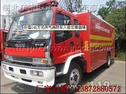 近日,在曲靖市人民政府的大力支持下,一輛價值145萬元的SJD5140TXFGQ78W供氣消防車正式落戶曲靖特勤消防中隊,并正式投入到執勤戰備中!肮び破涫,必先利其器”。特勤中隊是曲靖消防部隊的攻堅“拳頭”,以處置“急、難、險、重”任務為主,這樣的性質決定了特勤中隊除了要有過硬的專業技能以外,還應該配備各種高、精、尖和實用的裝備。