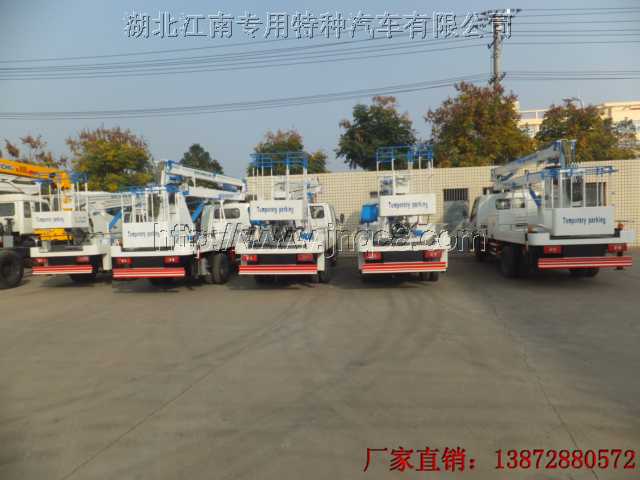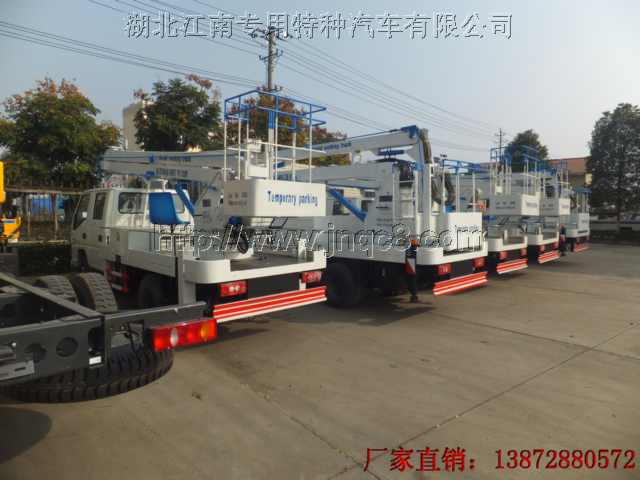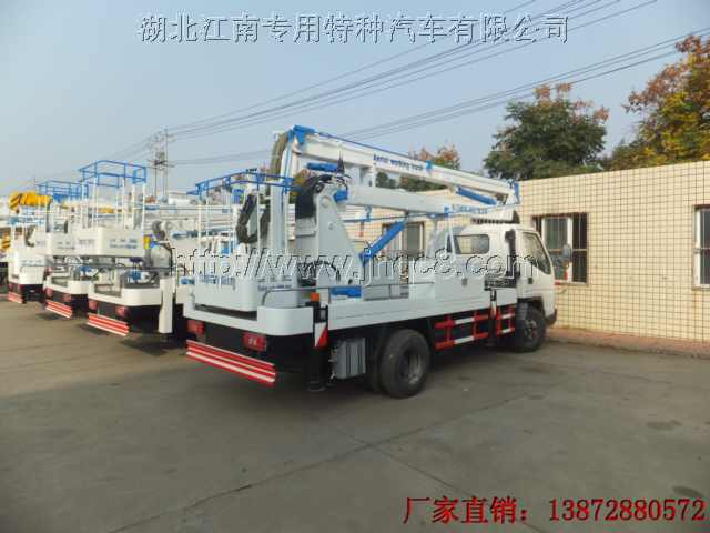 高空作業車|路燈車|路燈維修車|消防車|江南高空作業車:11月份,湖北江南專用特種汽車有限公司高空作業車事業部接到一批出口訂單,該訂單是出口至沙特的高空作業車。這批高空作業車有江鈴14米路燈車,江鈴16米路燈車,以及18米高空作業車。車輛已經生產完畢,擇日發往港口。