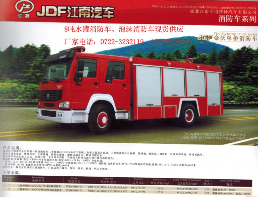 8噸消防車、泡沫消防車江南專汽供應:13872880572